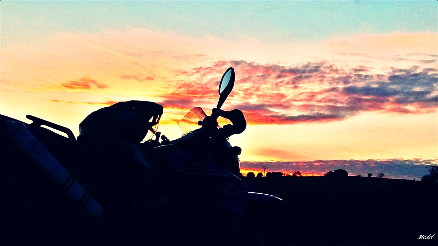 Y mi corcel, mi moto... medio de transporte para sentir de primera mano estas tierras, estos cielos... hoy inundados de sol, y aun daran sorpresas a quien cree todo visto rumbo a casa